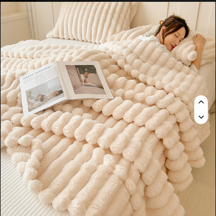 We selected this specific plush rabbit fleece texture for its tactile grounding properties. The thickened, ribbed design provides a comforting weight that mimics a gentle embrace, signaling to your nervous system that you are safe and it is time to rest.